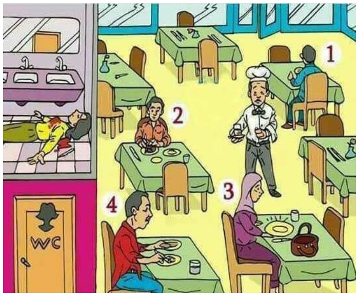 There were four people who could have potentially committed the crime: a young man, a middle-aged woman, a teenage boy, and an elderly gentleman with a kind, wrinkled face. After careful examination of the evidence and thorough questioning of the suspects, the detectives were able to determine that the middle-aged woman was the most likely culprit. So, would you have been able to identify the killer from the picture? Only women could have entered the bathroom where the murder took place, making it most likely that the woman did it. So, if you said the middle-aged woman, or number 3, then you were correct! And through diligent detective work, the killer was brought to justice.
