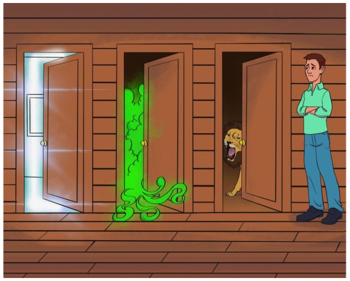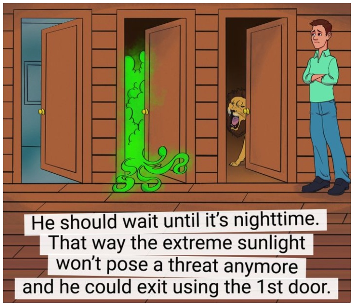 A man named Tom went hiking with his friend Chris on a Sunday after notifying his brother Dan. The next Saturday, the police find Tom dead in the woods. Dan said that he had been working all week. Chris was found wandering around the highway. He said that he got lost in the woods right after they arrived and had just found his way home. Look at the picture and guess who’s lying.