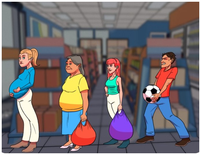 It was a busy year at the local supermarket, with customers streaming in and out of the store on a daily basis. But in the months of February, May, and July 2020, something unsettling occurred. Three separate thefts were reported, and the security cameras recorded footage of the incidents. As the detective examined the videos, he saw that all four suspects were present at each of the thefts. There was a young man, a middle-aged woman, a teenage girl, and a pregnant lady. The detective studied the footage carefully, trying to discern any clues that might help him solve the case. And as he watched the videos, again and again, he noticed something strange.