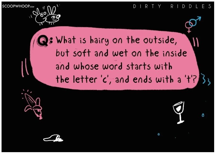 The riddle: Which word that starts with the letter C and ends with a T is hairy on the outside but soft and wet on the inside?