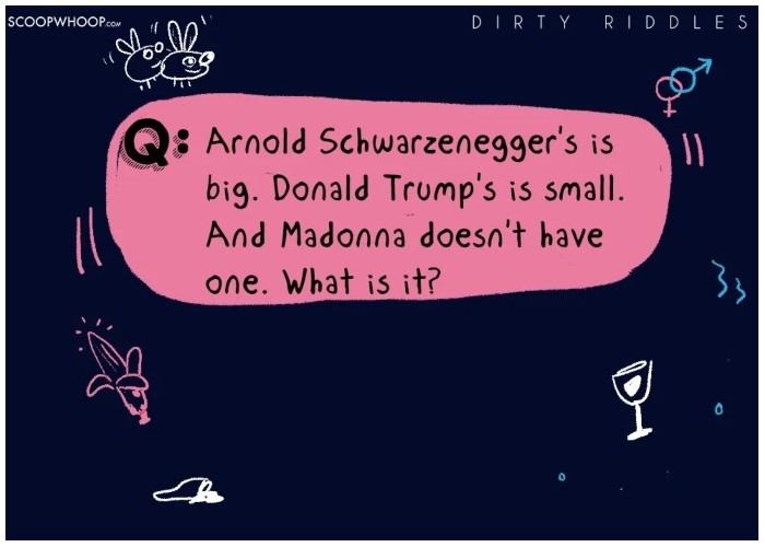 The riddle: Donald Trump’s is small. Arnold Schwarzenegger’s is big. And Madonna doesn’t have one. What is it?