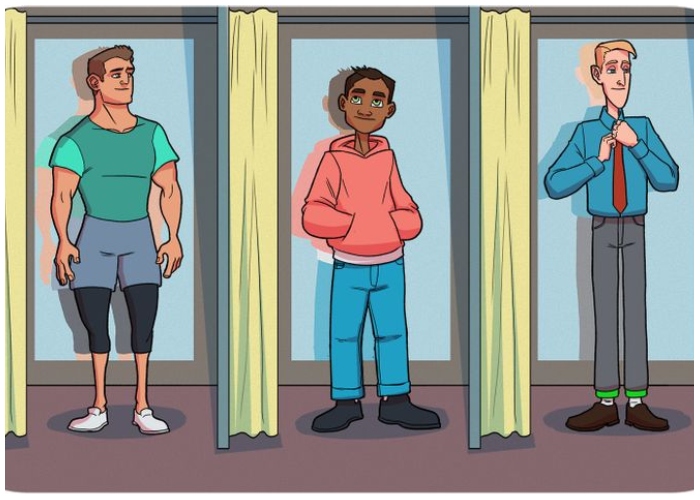 The answer lies in the details. The woman on the left wears a towel atop her head, concealing her short hair – a significant clue. The other woman caught this anomaly, leading her to suggest using the boys’ shower room.
