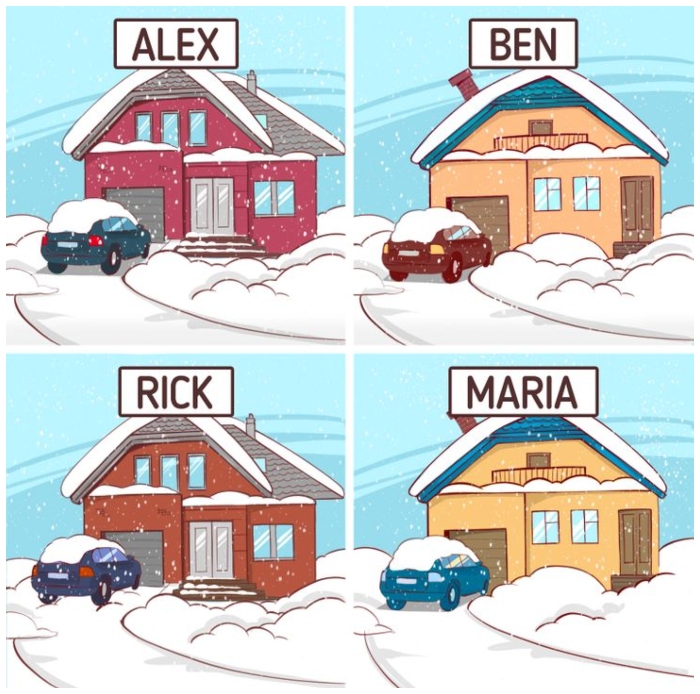You have to pay attention to the small details – they are the ones that will help you decipher the riddle. Rick wasn’t home. It can be seen that he parked his car after the snow piled up on the driveway.