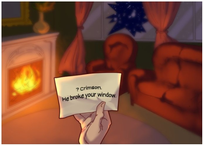 One snowy night, Sherlock Holmes was in his house, sitting by the fire. All of a sudden a snowball came crashing through his window and broke it. Holmes got up and looked out the window just in time to see three neighborhood kids who were brothers run around a corner. Their names were John Crimson, Mark Crimson, and Paul Crimson. The next day Holmes got a note that read: “? Crimson. He broke your window.”