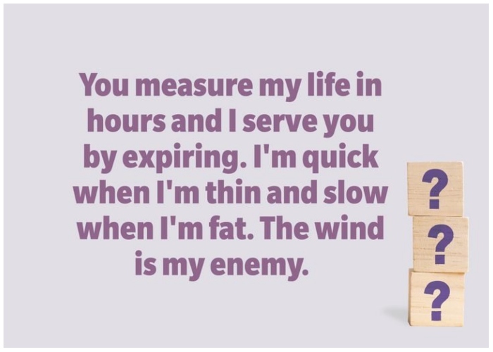 You count the hours of my life, and I do you a service by dying. If I’m lean, I move quickly; if I’m obese, I move slowly. My foe is the wind.