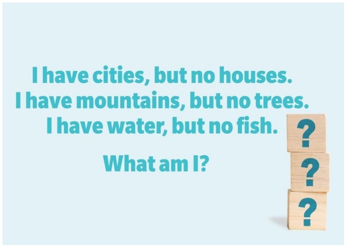 Cities abound, yet I lack any homes. I don’t have any trees, only mountains. There is water here, but no fish. So who am I?