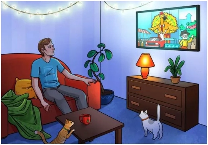 Picture this: a man, comfortably ensconced on his couch, savoring a piping hot cup of tea while engrossed in the flickering images on his television. The soft glow of a side lamp casts a warm, inviting aura, suggesting an idyllic evening spent at home. Meanwhile, his pair of feline companions are on the prowl, their curiosity piqued by the vibrant display of a Thanksgiving parade on the TV screen. At first blush, everything in this homey tableau seems to be in perfect harmony. However, lurking beneath the surface of this cozy scene is a glaring inconsistency.