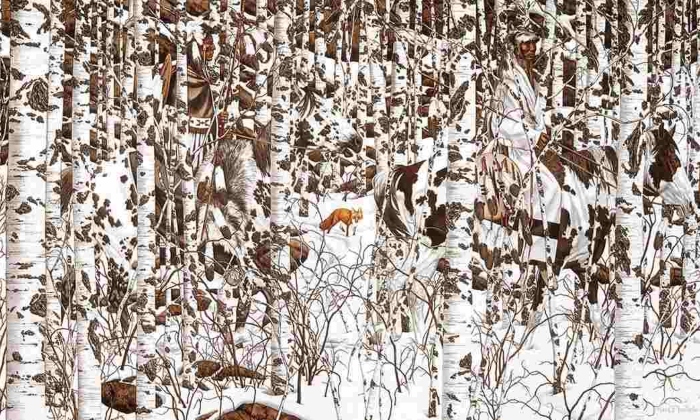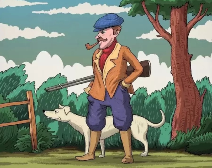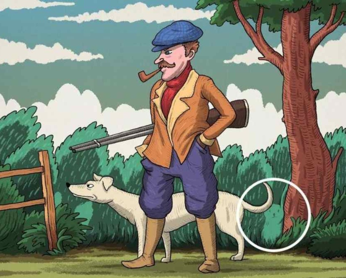 Within an unevenly divided scene featuring a hunter and his loyal dog, lies a riddle that will demand all your intellect and observational prowess. Your mission is to unearth another hidden animal, besides the dog, concealed within the forest.