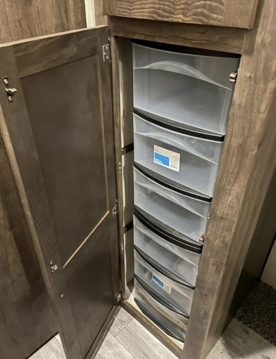 Because of its flexibility and many options, this hack is handy. It can be used to store makeup, clean bottles, or free up space that would otherwise go unutilized in a bathroom vanity cabinet.