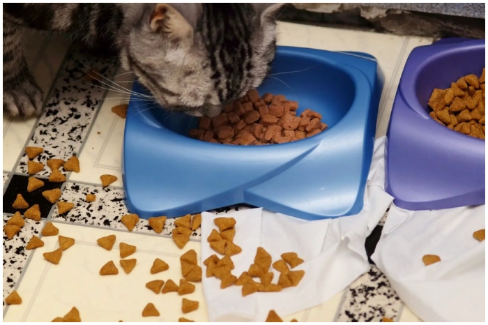 While placing food and water bowls next to each other might seem practical to you, cats prefer them to be separate. In the wild, cats do not eat and drink in the same location. Eating near their water supply can dissuade them from drinking, leading to dehydration.
