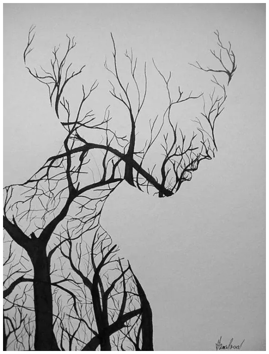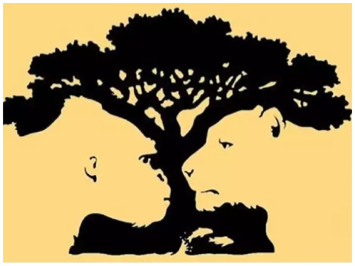 Alternatively, if your attention is drawn to the illusion of two distorted trees, it suggests an extroverted disposition. You gravitate towards social interactions over solitude, contrasting with your introverted peers. You place significant emphasis on how others view you in determining your self-esteem.