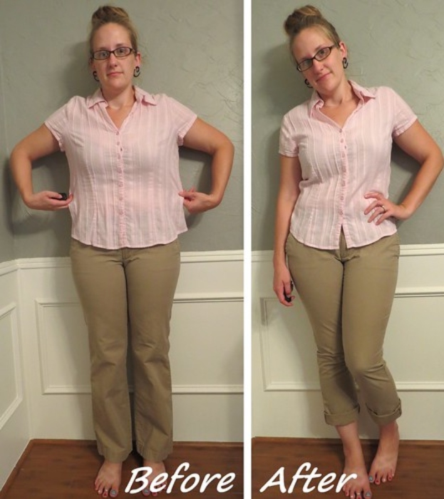 You don’t have to choose the style of jeans you prefer, but make sure they fit your body well and don’t sag in awkward spots. It will surprise you how different your body looks when there aren’t jeans that are too small.
