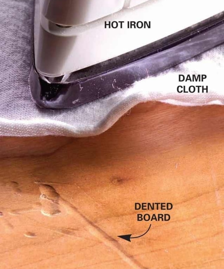 To cure scratches or dents on your wooden floors or furniture surfaces, there is a cool trick you can try with an iron! Clean the area where the dent is of all dirt, then wet it with a few drops of cold water.