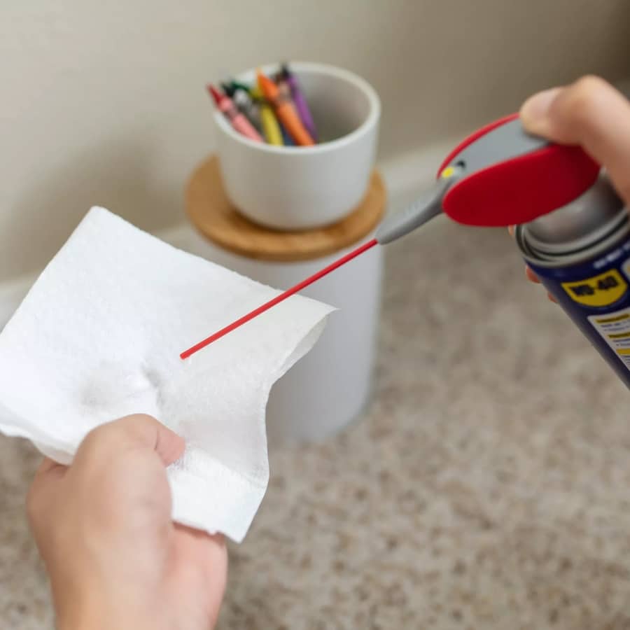 This is for all the parents of small children out there that know that the struggle to keep the walls clean is very real! If your wall paint happens to have a sheen to it, then spray a bit of WD-40 and easily wipe off the markings from markers or crayons.