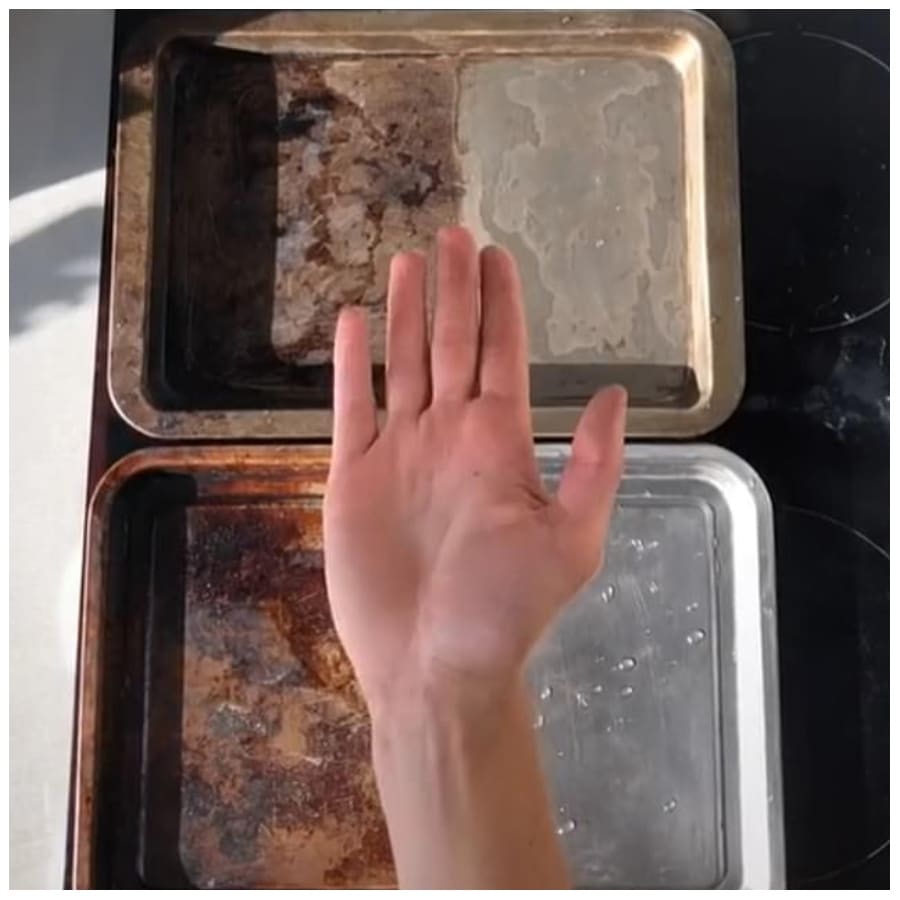 This household recipe will leave your dirty oven trays sparkling new. Mix baking soda, soda crystals, and white vinegar together and leave the tray to soak in it for 30 minutes.