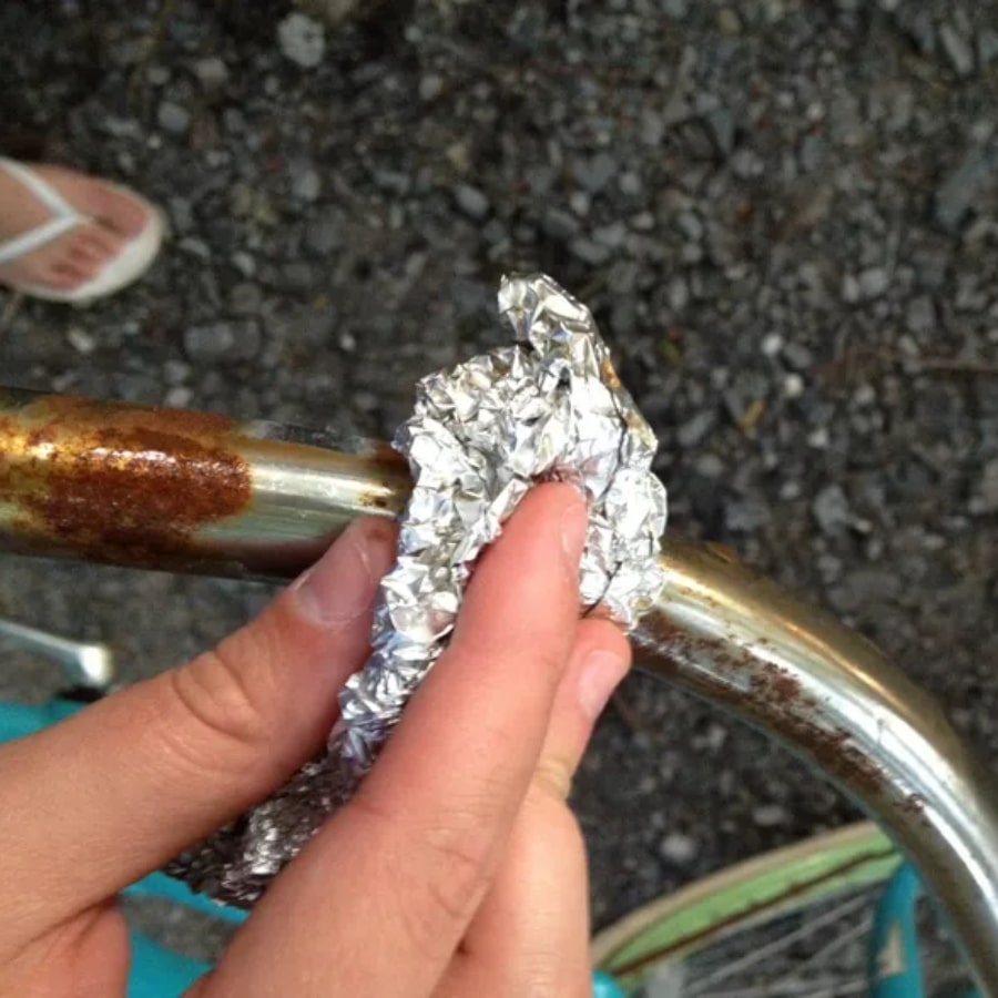 Aluminum foil has more domestic uses than we were initially aware of. One of them is that it easily clears rust from any chrome surface. It is recommended that you first clean such a surface with a microfiber towel and soapy water.
