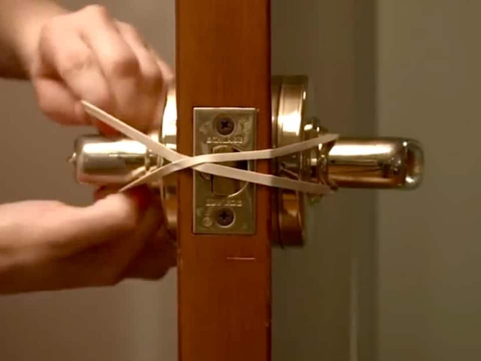 Take a rubber band and loop it on both sides of the doorknob, this will prevent it from latching and closing shut. Keep a rubber band in your purse or car! On a heavier door, try felt pads, but if they are not enough, use foam weather stripping to provide a soft, secure seal and minimize noise. Remove any dust or grime from the inner edge of the doorframe, then cut and press a length of weather stripping to suit the entire length of the doorframe. Also, if the sound of your screen door slamming scares you every time someone comes in or out, try installing a pneumatic door closer to do the job. These air-powered devices attach between the doorframe and the door edge and slowly close the door using an air-filled piston.
