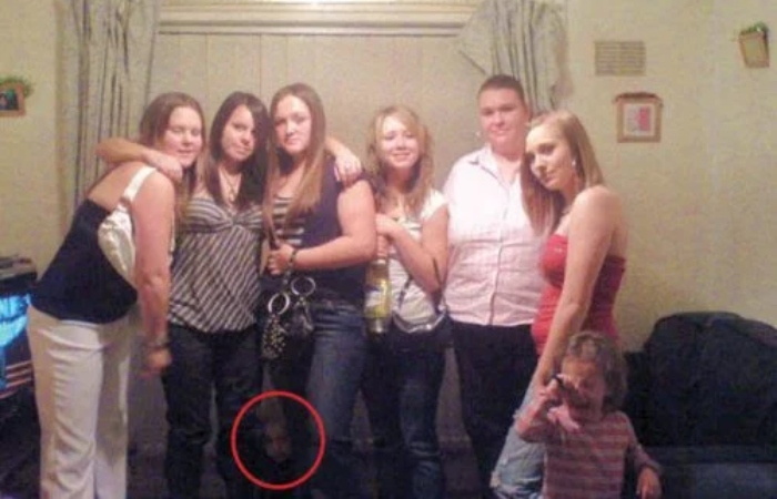 In a photograph that was supposed to capture a moment of joy before a party, something unsettling was immortalized instead. A group of friends struck a pose, unaware of the spectral child that appears sandwiched between the second and third individuals in the shot. Adding to the eeriness, a small girl is seen crying on the far right of the frame. Her tears, it turns out, weren’t without reason.