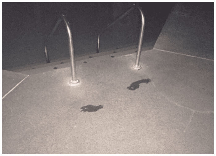 This picture might appear benign at first glance, but its backstory is enough to give one goosebumps. After hearing a splash, the sound of wet feet on the pavement, and even giggles, the pool attendant discovered footprints around the pool – not made by any known human.