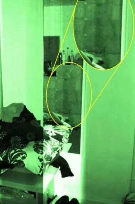 What initially was shot in the dark became a chilling revelation when they lightened the photo. A spectral visage emerged, solidifying the room’s haunted reputation.