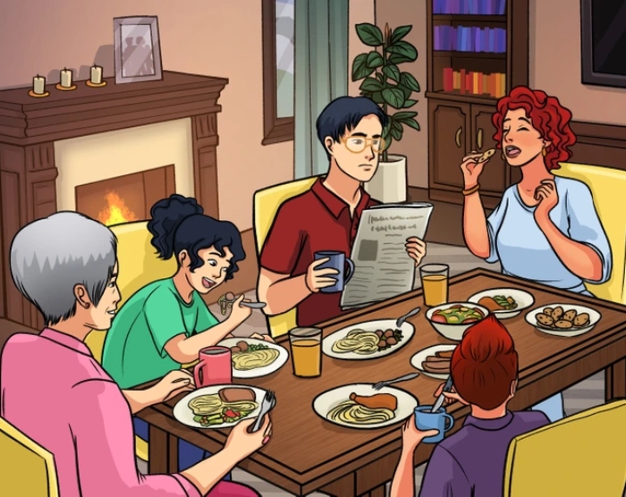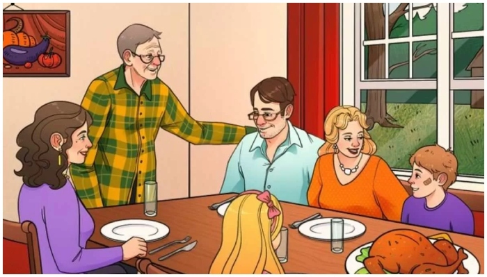 Feast your eyes on the picture above—a heartwarming scene of a family gathered around the dining table, ready to dig into a mouthwatering turkey. It’s the quintessential snapshot of a perfect family dinner. Grandpa is standing, probably sharing some wisdom or cracking a joke, while the rest of the family is seated and eager to eat. But wait a minute—something’s off. Can you spot it?