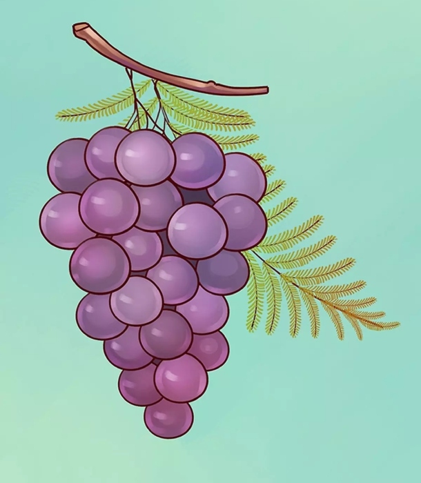 he grapes are so vividly hued that they seem to burst with flavor, almost compelling you to reach out and taste their juicy sweetness. The sun dapples through the leaves, casting a magical glow on the fruit, making them appear like little jewels set against a verdant backdrop.