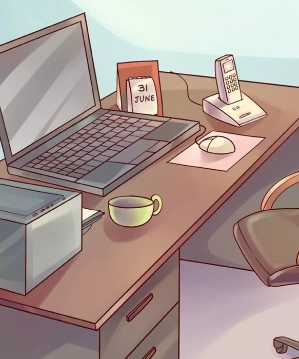 Picture a quintessential work desk filled with all the essentials: a laptop, a phone, a coffee cup, and a calendar, among other miscellaneous items.