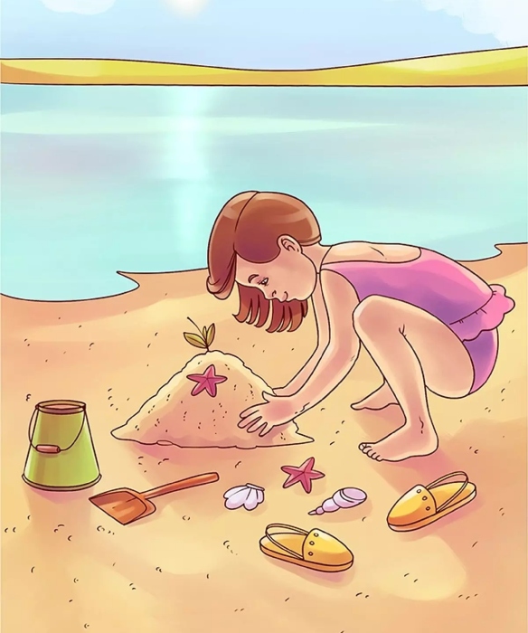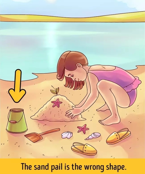 Her bright yellow sandals sit nearby, adding a finishing touch to this perfect beach day. But wait—a small, incongruent detail awaits your discovery. Will you spot it? Scroll down to the end to see the answer
