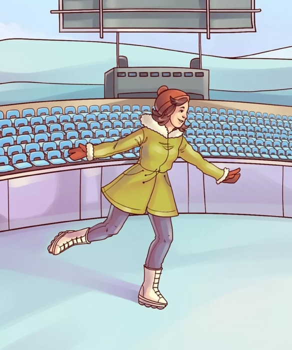 Picture a serene ice rink, eerily calm and meditative in its emptiness. A lone woman glides gracefully across the glistening surface, her winter attire including a snug beanie and gloves. Her face is a mask of concentration and pleasure, as if she’s communing with the ice and the air.