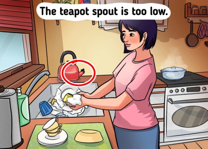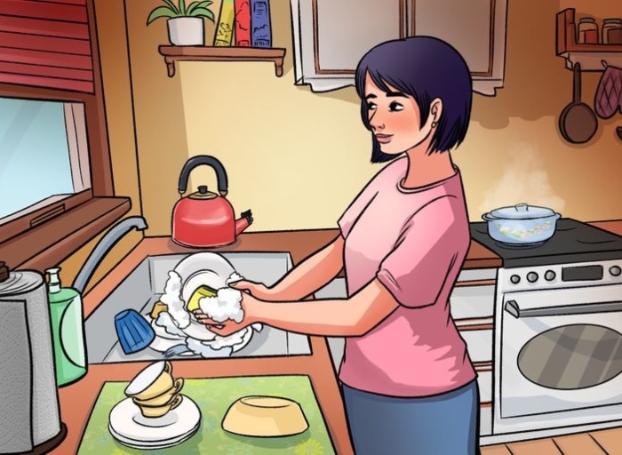 Next to her, a dish rack holds plates and utensils neatly arranged to dry. It’s a snapshot of domestic bliss, an everyday moment captured in time. Yet, something isn’t quite right. Do you see it? Scroll down to the end to see the answer