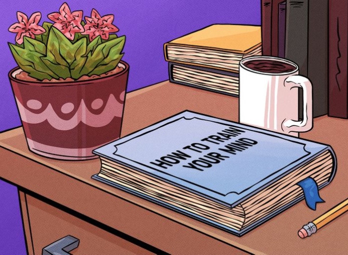 With books stacked next to him and cookies and tea for the taking, it seems like an idyllic day. However, a closer look reveals an inaccuracy, find it quick! Scroll down to the end to see the answer