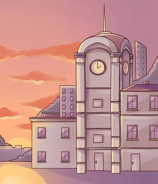 Imagine a scene of unparalleled beauty: a majestic tower silhouetted against a breathtaking sunset. The sky is painted in ethereal shades of purple and pink, offering a tranquil and dreamily romantic backdrop.