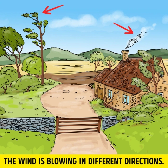 The setting seems flawless, a perfect depiction of pastoral bliss. But hold on—something’s not adding up. Amidst this idyllic tableau, a detail defies the laws of nature. Will you spot the incongruity that disrupts this otherwise perfect countryside snapshot? Scroll down to the end to see the answer