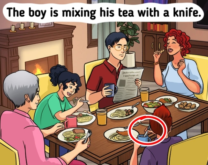 The atmosphere is one of warmth and familial comfort, seemingly the perfect snapshot of a loving home. However, something puzzling catches the eye, can you see what? Scroll down to the end to see the answer