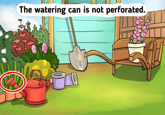 Essential gardening tools, such as a wheelbarrow, a spade, and a watering can, stand at the ready, anticipating the gardener’s touch. Adding to this pastoral serenity is a charming shed, replete with rustic allure, nestled invitingly in the background. It’s the kind of place where you can lose yourself for hours. But can you find what’s wrong in this scene? Scroll down to the end to see the answer