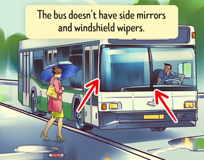 The bus driver waits, ready to open the doors. It’s a scene we’ve all been part of, but does something seem out of place? Can you pinpoint it? Scroll down to the end to see the answer