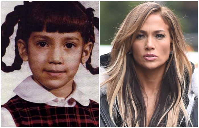 In this childhood picture, she is difficult to recognize. Her sharp cheekbones are covered under her supple cheeks. JLo is an adorable child in this photo, dressed in a plaid shirt and sporting piglets.