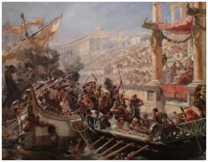 Caesar wanted the public to be on his side. This is why he created the mock sea battle, the Naumachia. It occurred in 46 BC and featured a man-made lake that attracted people from all over Italy. Two senators were actually crushed by the crowd.
