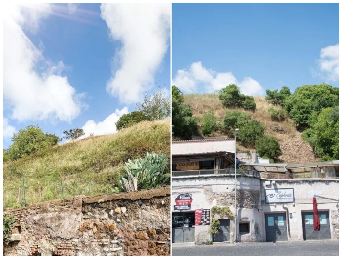 The jars could not be reused because the oil would go rancid. What were they to do with five-foot-tall jars? Place them in a heap. Monte Testaccio, which means “broken pot mountain,” still stands today. It’s 45 feet underground and 150 feet tall. It’s filled with 25-80 million broken pots dating back centuries.