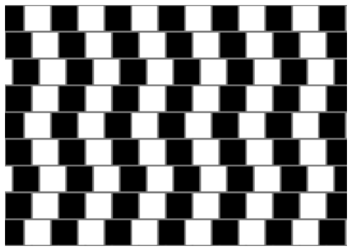 Focus on the Horizontal Lines of the Checkered Wall – Are They Straight?