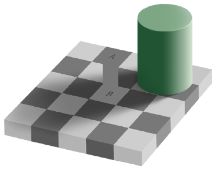 The question is, are the squares marked A and B the same shade? A high percentage of people would say no; however, they are indeed the same color. To make a little more sense of it, the brain in making the wrong judgment based on the proximity of light and dark squares.